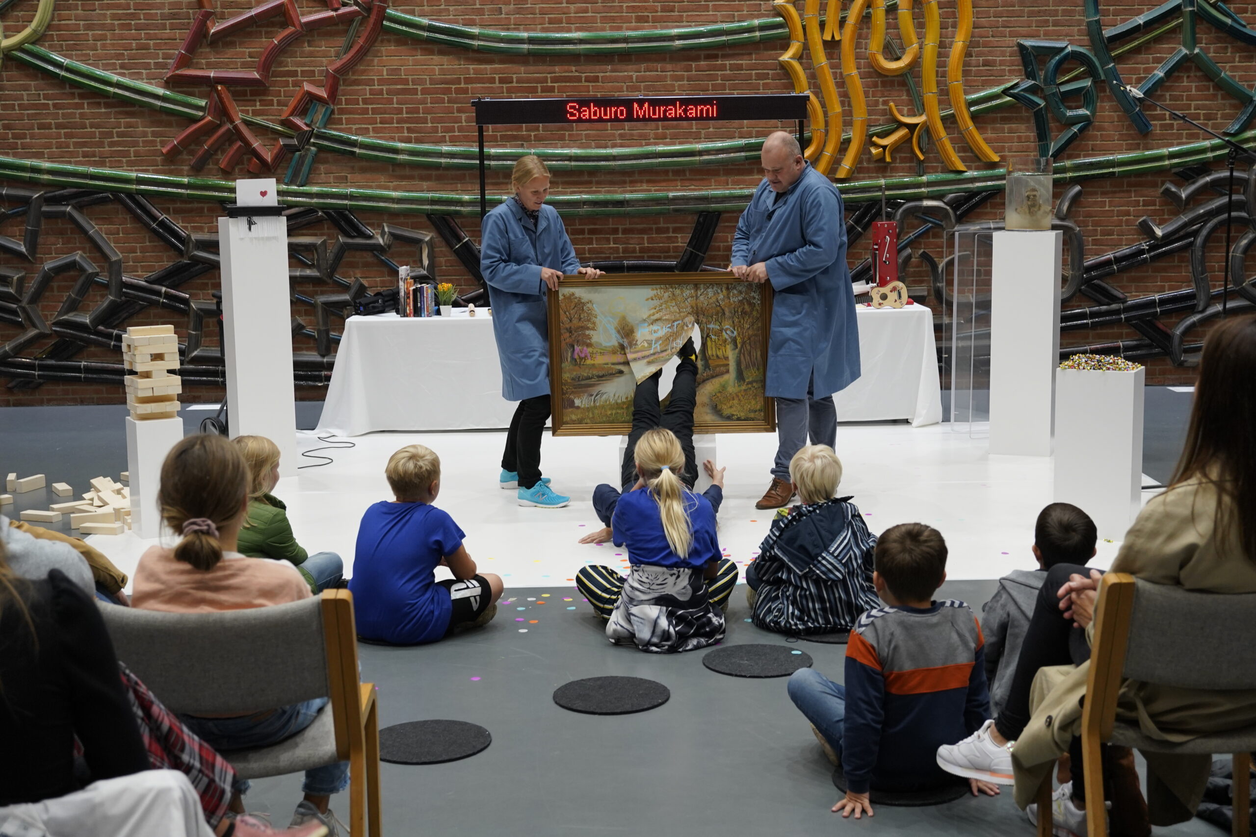 KABOOM er en eksplosiv blanding af kunst, bæredygtighed og kreative ødelæggelser! Her bliver gamle malerier genbrugt til nye billeder, slidte bøger forvandlet til pølse-objekter, og udtjente guitarer giver liv til vilde lyde og rytmer. Intet er helligt – alt kan blive til noget nyt og overraskende.